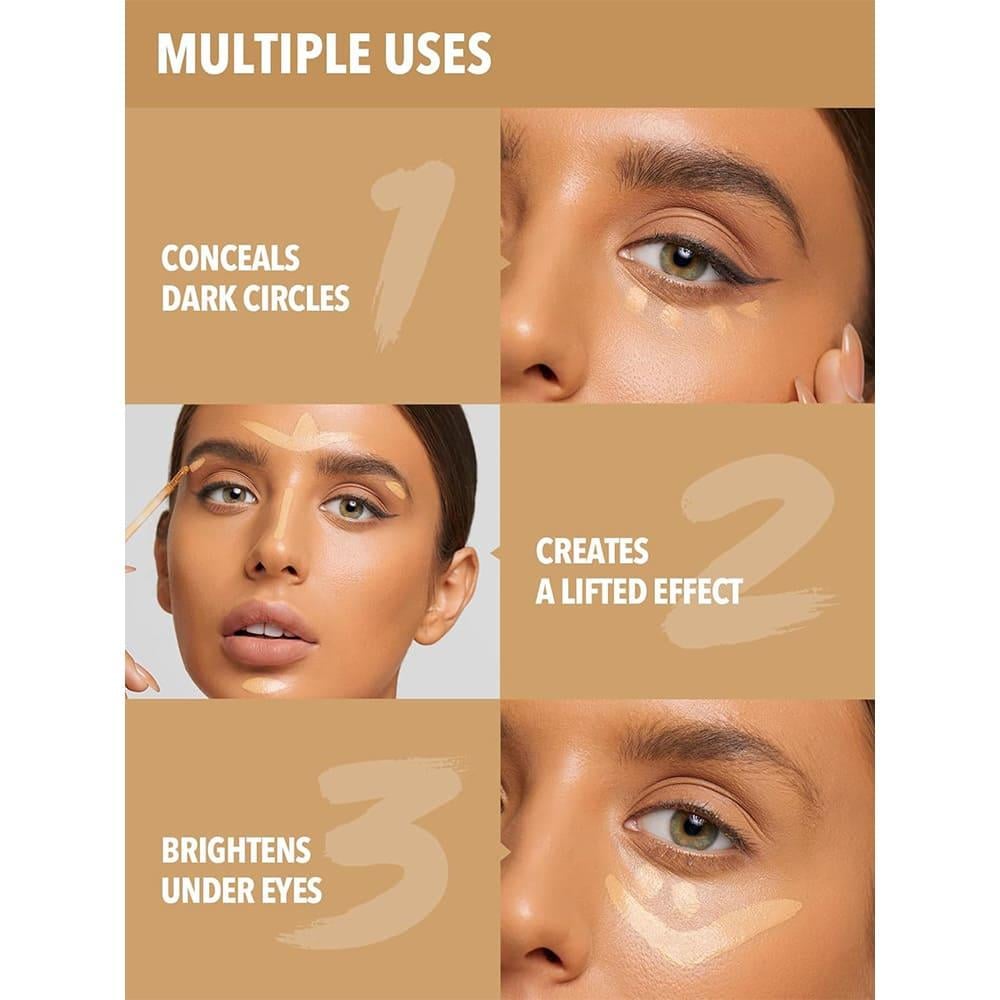 - يخفي تماماً الهالات السوداء، الشوائب، والبقع للحصول على بشرة نقية.