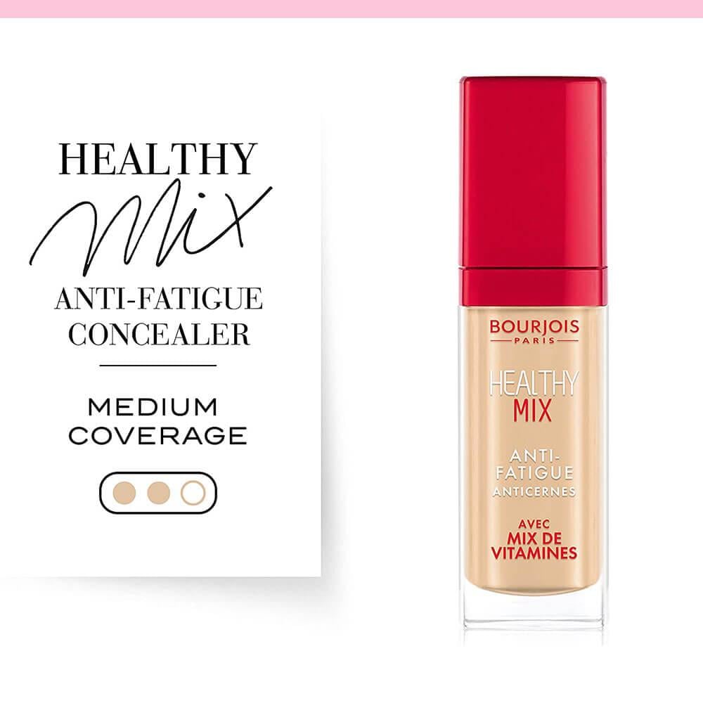 برجوا هيلثي مكس كونسيلر  مقاوم للارهاق هو كونسيلر يتميز بتركيبة خاصة تساعد على إخفاء علامات التعب والإرهاق تحت العينين. تركيبته تحتوي على مكونات تساعد في تقليل الانتفاخات والهالات السوداء، مع مزيجها الحصري من فيتامينات C و E و B5 ، خافي العيوب Healthy Mix يمنحك اطلالة بشرة صحية مشرقة.