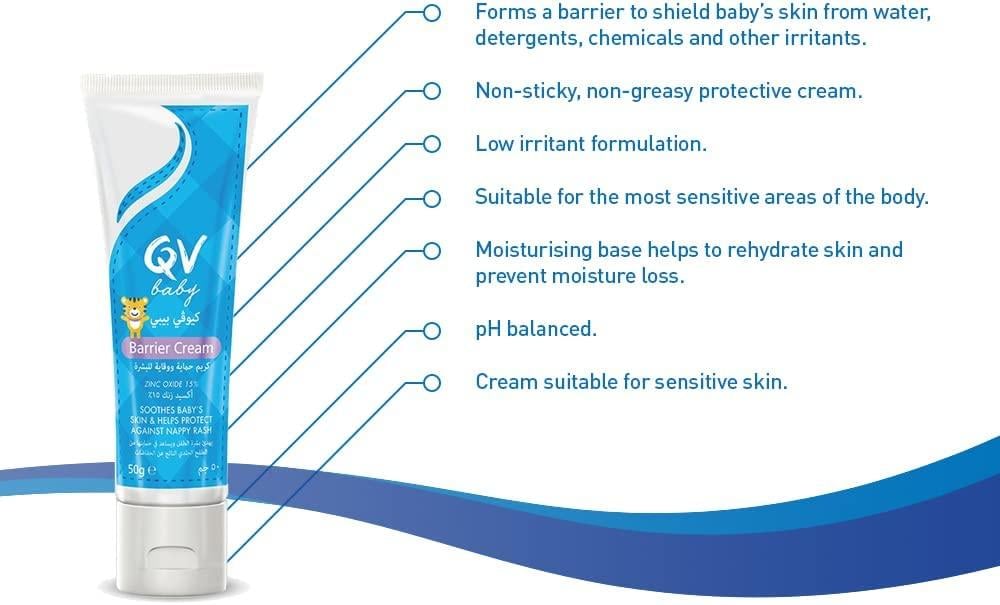• يحتوي كريم كيوفي بيبي على مكونات تساعد في حماية بشرة الطفل من الطفح الجلدي والتهيجات.