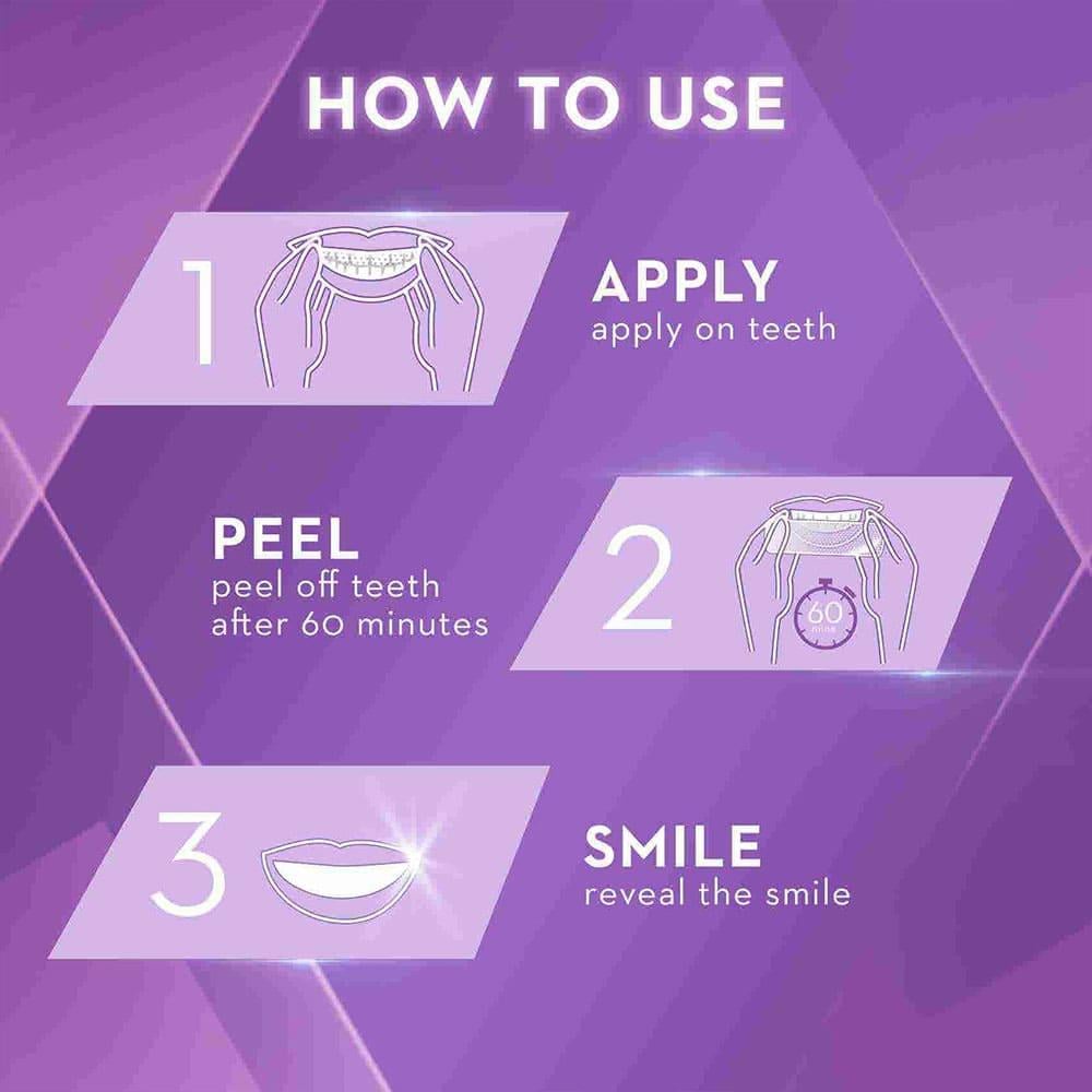 طريقة الاستخدام: لصقات تبييض الأسنان كرست ثري دي وايت