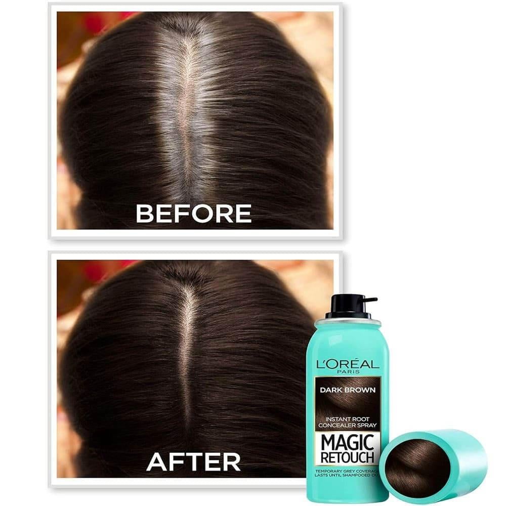 ماجيك ريتوتش أول سبراي لإخفاء الجذور بفترة ثلاث ثوانٍ فقط بطريقة السبراي السهلة والمناسبة جداً . يختفي بغسلة واحدة. مع تركيبة بدون امونيا، يلائم ٨٥٪ من الألوان ويندمج معها بشكل رائع. بخاخ فوري لتغيير لون الشعر.بخاخ يخفي عيوب لون الشعر من الجذور مع لمسة حريرية فورية.