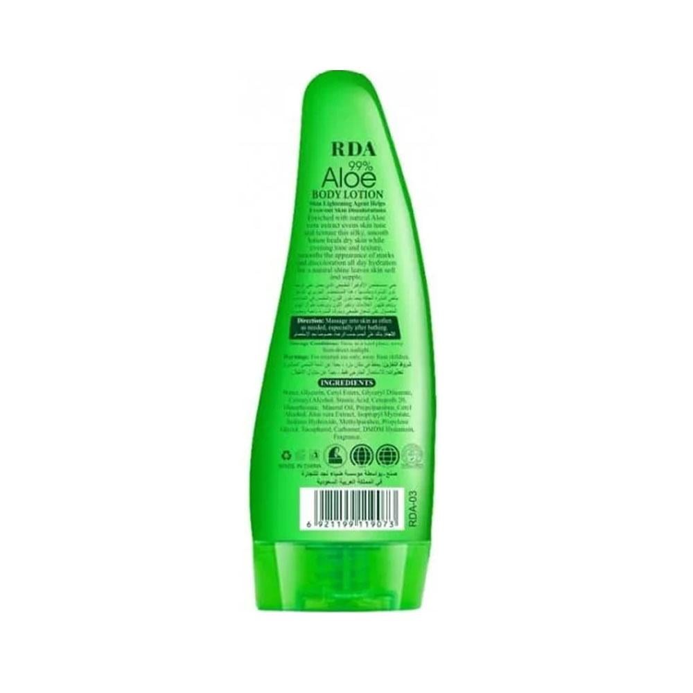 ار دي ايه لوشن معطر جسم بالصبار هو منتج خفيف ومرطب مصمم ليمنح بشرتك نعومة فائقة ورائحة منعشة، بفضل احتوائه على مستخلصات الصبار الطبيعية. يجمع اللوشن بين خصائص الترطيب العميق والتغذية التي يوفرها الصبار، مما يجعله مثاليًا للعناية اليومية بالبشرة الجافة والعادية.