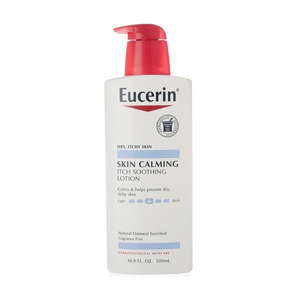 يوفر لوشن Eucerin Skin Calming ترطيباً لمدة كبيرة وتحكماً طويل الأمد في البشرة الجافة والمتهيجة للحكة. تجمع هذه التركيبة اللطيفة وغير الدهنية بين دقيق الشوفان الطبيعي المهدئ والمرطبات الغنية للتخفيف والمساعدة على منع جفاف الجلد والحكة والحفاظ على ترطيب البشرة. المستحضر سهل التطبيق وغير دهني وسهل الامتصاص. غسول مهدئ للبشرة آمن للبشرة الحساسة وخالي من العطور والصبغة.