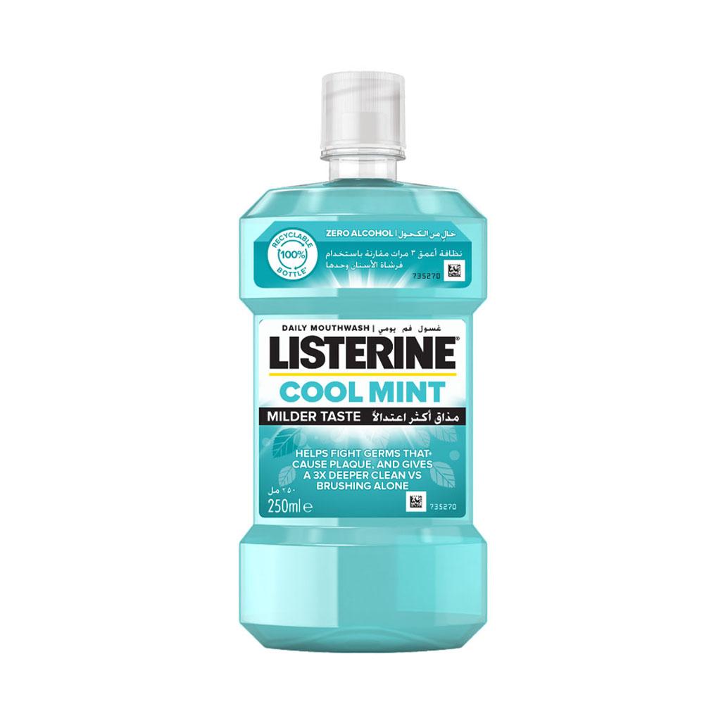 الوصف:يُعد غسول الفم ليسترين كول مينت خيارًا رائعًا للأشخاص الذين يبحثون عن غسول فم فعال ومنعش. كما انه يحتوي على الكلورهيكسيدين غلوكونات، وهو عامل مضاد للميكروبات يقتل البكتيريا المسببة لرائحة الفم الكريهة والبلاك. الفوائد والمميزات:يقتل البكتيريا المسببة لرائحة الفم الكريهة والبلاك.يساعد على منع تسوس الأسنان عن طريق تقوية مينا الأسنان وحمايتها من الأحماض التي تسبب التسوس.يعزز صحة اللثة ويقلل من الالتهاب.ينعش النفس ويمنحه رائحة منعشة تدوم طويلاً.لا يحتوي على الكحول.سهل الاستخدام: ما عليك سوى المضمضة بـ 20 مل من غسول فم لمدة 30 ثانية مرتين في اليوم بعد تنظيف الأسنان بالفرشاة. طريقة الاستعمال:يستخدم مرتين يوميا لفعالية أكثر ينصح باستخدامة مرتين يوميا صباحا ومساءا.بعد تنظيف الاسنان بالفرشاة اسكب 20مل في كوب وقم بالمضمصه لمدة 20 ثانية. التحذيرات :غير مناسب للاطفال دون سن 12 سنة.عدم ابتلاع المنتج .لا تستخدمه اذا كان لديك حساسية.يحفظ بعيدا عن متناول الاطفال.يحفظ بعيدا عن الحرارة واشعة الشمس