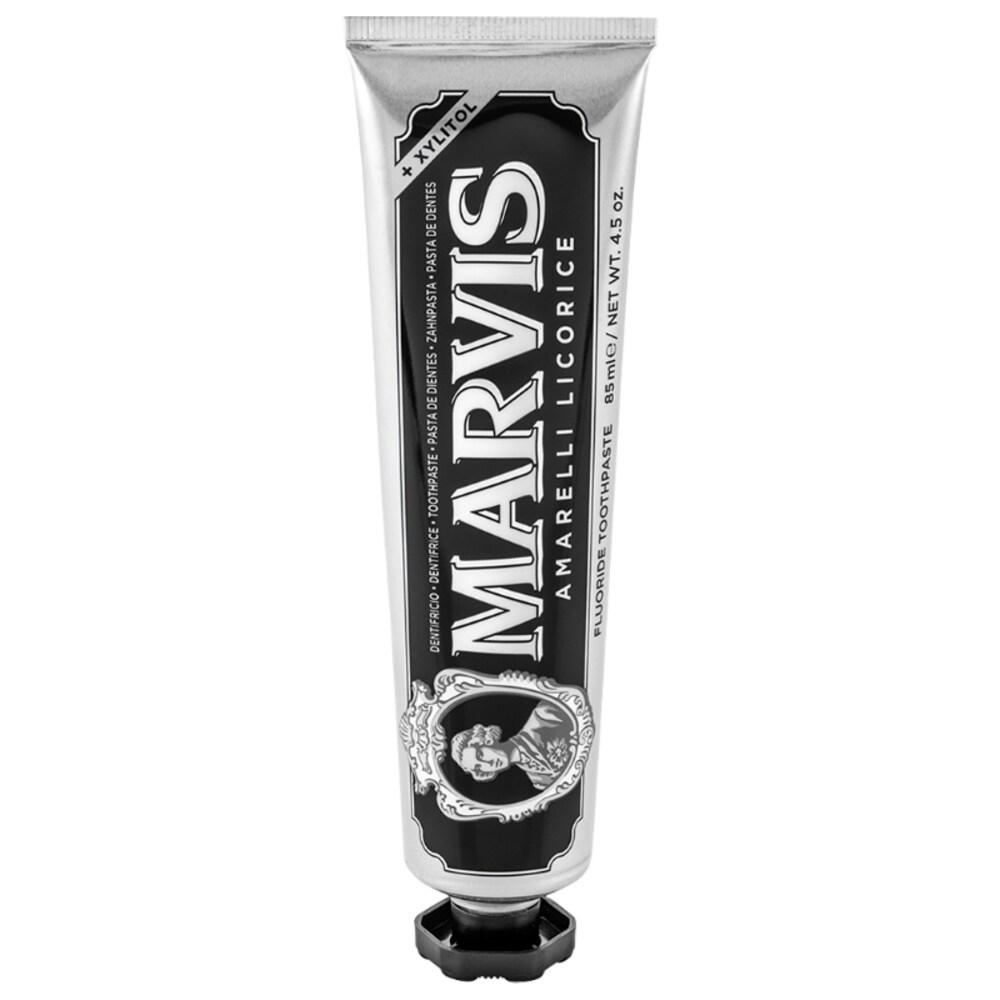 غيّر ابتسامتك وطقوس تنظيف الأسنان باستخدام معجون أسنان Amarelli Licorice من معجون الأسنان الإيطالي الفاخر Marvis ؛ معجون أسنان كريمي منعش بنكهة عرق السوس الفريدة التي تبيض وتحمي الأسنان بينما تنعش النفس. تم تطويره للحفاظ على صحة الأسنان واللثة مع منع التسوس ، ويستخدم معجون الأسنان تركيبة لطيفة من الزيليتول والسوربيتان لتنظيف وترطيب الأسنان دون تهيج.الفوائد والمميزات:معجون أسنان كريمي بنكهة غنية فريدة.يحتوي على الفلورايد لمنع تسوس الأسنان مع مكافحة الجير والبلاك .بنكهة الأماريلي عرق سوق المصفى.يوفر إحساس بطعم ممتع يدوم طويلا .يجعل رائحة النفس منتعشة طوال اليوم.يترك الأسنان نظيفة ومحمية وصحية.معبأ في أنبوب مارفيس مميز اللون بغطاء منحوت بشكل أنيق.طريقة الاستعمال:استخدم الفرشاة مرتين يوميًا لمدة دقيقتين على الأقل في كل مرة. استخدم فرشاة أسنان ناعمة أو متوسطة الشعيرات. استبدل فرشاة أسنانك كل شهرين إلى ثلاثة أشهر. يمكن استخدامه مع غسول الفم.المكونات:جلسيرين ، هيدروكسيد الألومنيوم ، ماء ، سيليكا ، نكهات (نكهة) ، صمغ السليلوز ، ثاني أكسيد التيتانيوم ، كبريتات لوريل الصوديوم ، سكرين الصوديوم ، سيترات الصوديوم ، حامض الستريك ، يوجينول ، ليمونين ، قرفة ، كحول اليانسون ، كحول بنزيل.التحذيرات:للاستخدام الخارجي فقط.يحفظ في مكان بارد وجاف ، بعيداً عن أشعة الشمس المباشرة.يحفظ بعيداً عن متناول الأطفال.