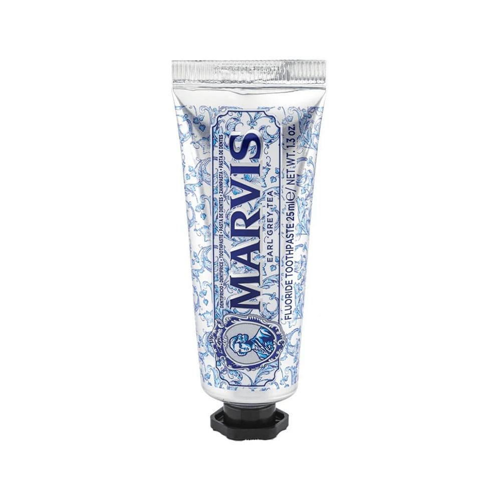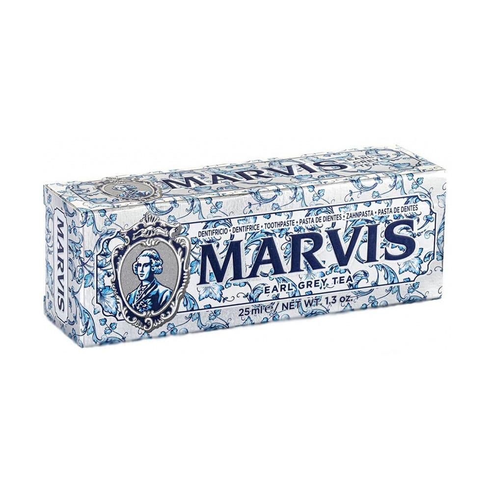 غيّر ابتسامتك وطقوس تنظيف الأسنان باستخدام معجون أسنان Earl Grey Tea من معجون الأسنان الإيطالي الفاخر Marvis ؛ معجون أسنان كريمي منعش بنكهة شاي إرل غري الفريدة التي تبيض وتحمي الأسنان بينما تنعش النفس. تم تطويره للحفاظ على صحة الأسنان واللثة مع منع التسوس ، ويستخدم معجون الأسنان التركيبة الفعالة المكونة من إكسيليتول والفلورايد التي تحمي الأسنان بشكل فعال من التسوس وتساعد على إزالة البلاك وتبيض المينا وتجعل ابتسامتك أكثر جاذبية.*شاي إرل غري: هو مزيج شاي بنكهة مع إضافة زيت البرغموت. تقليديا، «إرل غري» كان يُصنع من الشاي الأسود، ولكن بدأت شركات الشاي بتقديم إرل غري في أصناف أخرى أيضا، مثل الشاي الأخضر أو الشاي الصيني الأسود.الفوائد والمميزات:معجون أسنان كريمي بنكهة غنية فريدة.يحتوي على الفلورايد لمنع تسوس الأسنان مع مكافحة الجير والبلاك .بنكهة شاي ايرل غري يمنحك المذاق الرائع للبرغموت.يوفر إحساس بطعم ممتع يدوم طويلا .يجعل رائحة النفس منتعشة طوال اليوم.يترك الأسنان نظيفة ومحمية وصحية.معبأ في أنبوب مارفيس مميز اللون بغطاء منحوت بشكل أنيق.طريقة الاستعمال:استخدم الفرشاة مرتين يوميًا لمدة دقيقتين على الأقل في كل مرة. استخدم فرشاة أسنان ناعمة أو متوسطة الشعيرات. استبدل فرشاة أسنانك كل شهرين إلى ثلاثة أشهر. يمكن استخدامه مع غسول الفم.المكونات:الجلسرين ، كربونات الكالسيوم ، أكوا (ماء / ماء) ، سيليكا ، نكهة (نكهة) ، صمغ السليلوز ، إكسيليتول ، كبريتات لوريل الصوديوم ، ثاني أكسيد التيتانيوم ، سكرين الصوديوم ، فلوريد الصوديوم ، حامض الستريك ، سترات الصوديوم ، ليمونين ، جيرانيول ، لينالول ، سيترال.التحذيرات:للاستخدام الخارجي فقط.يحفظ في مكان بارد وجاف ، بعيداً عن أشعة الشمس المباشرة.يحفظ بعيداً عن متناول الأطفال.
