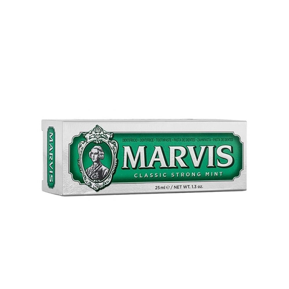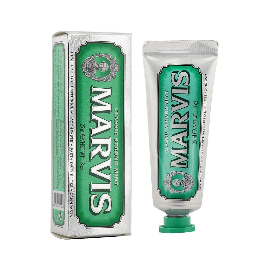 غيّر ابتسامتك وطقوس تنظيف الأسنان باستخدام معجون الأسنان الكلاسيكي القوي بالنعناع من معجون الأسنان الإيطالي الفاخر Marvis ؛ معجون أسنان كريمي منعش بنكهة النعناع المنعش الذي يبيض الأسنان ويحميها بينما ينعش النفس. تم تطويره للحفاظ على صحة الأسنان واللثة مع منع التسوس ، ويستخدم معجون الأسنان تركيبة لطيفة من الزيليتول والسوربيتان لتنظيف وترطيب الأسنان دون تهيج.الفوائد والمميزات:معجون أسنان كريمي بنكهة غنية فريدة.رائحة قوية من أوراق النعناع عالية الجودة لمنحك إحساساً ممتعاً طوال اليوم.يساعد في الحفاظ على النفس منتعشاً لفترة أطول.يزيل البلاك والجير ويمنع تسوس الأسنان ، ويساعد مينا الأسنان أيضاً.يحتوي على الفلورايد والإكسيليتول لتنظيف فمك وأسنانك بعمق.يجعل رائحة النفس منتعشة طوال اليوم.معبأ في أنبوب مارفيس مميز اللون بغطاء منحوت بشكل أنيق.يحقق أسنانًا نظيفة تماماً مع ابتسامة مشرقة.طريقة الاستعمال:استخدم الفرشاة مرتين يوميًا لمدة دقيقتين على الأقل في كل مرة. استخدم فرشاة أسنان ناعمة أو متوسطة الشعيرات. استبدل فرشاة أسنانك كل شهرين إلى ثلاثة أشهر. يمكن استخدامه مع غسول الفم.المكونات:جلسرين ، هيدروكسيد الألومنيوم ، ماء ، سيليكا ، نكهة (نكهة) ، صمغ السليلوز ، ثاني أكسيد التيتانيوم ، كبريتات لوريل الصوديوم ، سكرين الصوديوم ، سيترات الصوديوم ، حامض الستريك ، يوجينول ، ليمونين ، كحول بنزيل.التحذيرات:للاستخدام الخارجي فقط.يحفظ في مكان بارد وجاف ، بعيداً عن أشعة الشمس المباشرة.يحفظ بعيداً عن متناول الأطفال.