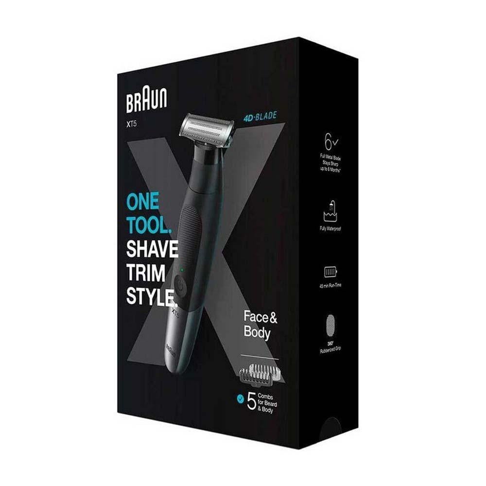 براون ماكينة تشذيب الوجه والجسم شفرة فور دي XT5100 عبارة عن ماكينة تشذيب اللحية وأداة العناية بالجسم وشفرة الحلاقة الكهربائية للرجال كل ذلك في أداة واحدة توفر الشفرة 4D حلاقة سهلة ومريحة ولطيفة على البشرة مقاومة للماء بنسبة 100% يمكن استخدام أداة التشذيب وآلة الحلاقة هذه رطبة أو جافة كما أن شفرتها المعدنية مصممة لتدوم لمدة تصل إلى 6 أشهر التصميم النحيف والقبضة المضادة للانزلاق تجعل من السهل التعامل معها بشكل مدهش استنادًا إلى الحلاقة الكاملة مرتين في الأسبوع قد تختلف النتائج الفعلية.