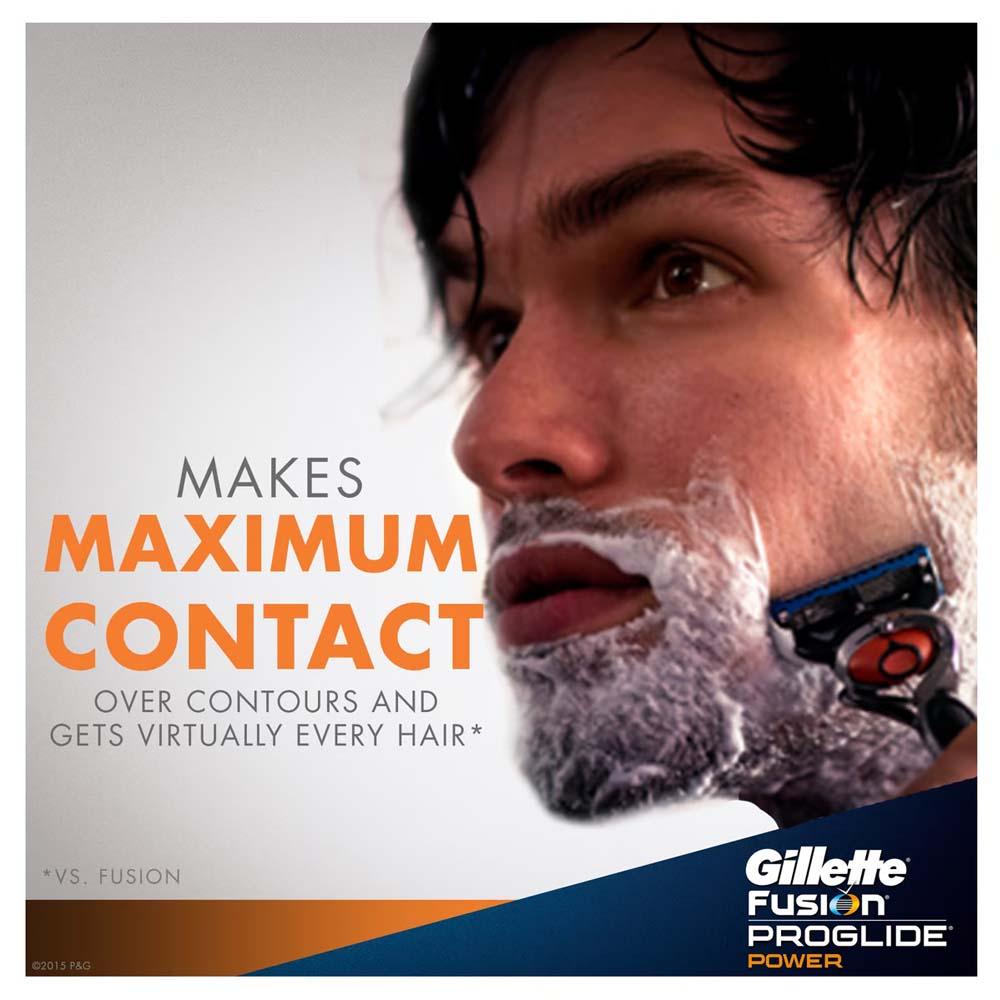 ماكينة الحلاقة الرجالية ProGlide المزودة بتقنية FlexBall تتحرك مع كل زاوية من وجهك للحصول على حلاقة دقيقة ومريحة تحتوي ماكينة الحلاقة ProGlide الخاصة بنا على خمس شفرات مضادة للاحتكاك حادة وأنحف (أول 4 شفرات) للحصول على كل شعر تقريبًا. تعمل الزعانف الدقيقة الناعمة قبل الشفرات على تمديد بشرتك بلطف وتنعيمها، بينما يساعد المشط الصغير على توجيه شعرك للحصول على حلاقة دقيقة يساعد شريط التشحيم المحسّن الذي يحتوي على المزيد من مواد التشحيم (مقارنة بـ Fusion5) على انزلاق الشفرات على بشرتك للتأكد من أن حلاقتك مريحة للغاية