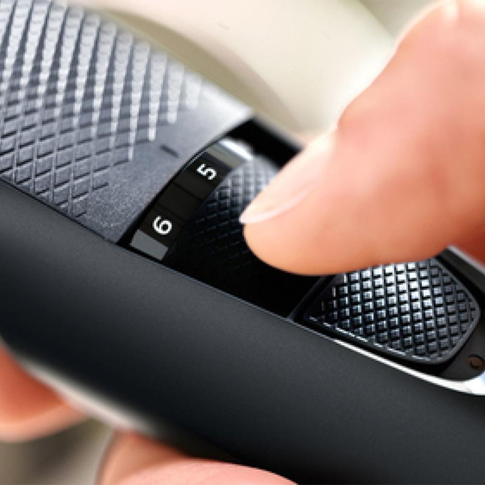 - 10 إعدادات لطول القص اختر من بين 0.5 إلى 10 مم مع خطوات دقة 1 مم للحصول على الطول المثالي للّحية.