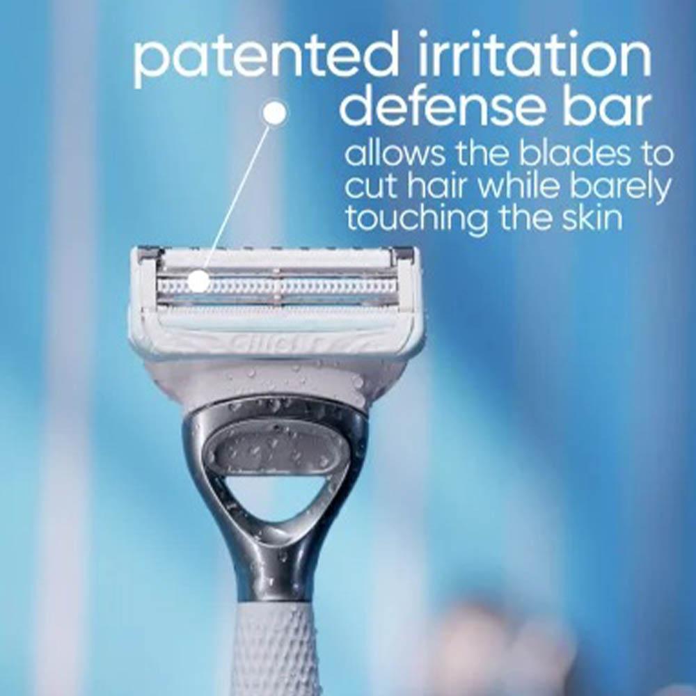 - تتمتع هذه الشفرات بحاجز للحماية من التهيج الحاصل على براءة اختراع لحلاقة سلسة وشفرات بالكاد تلامس البشرة.