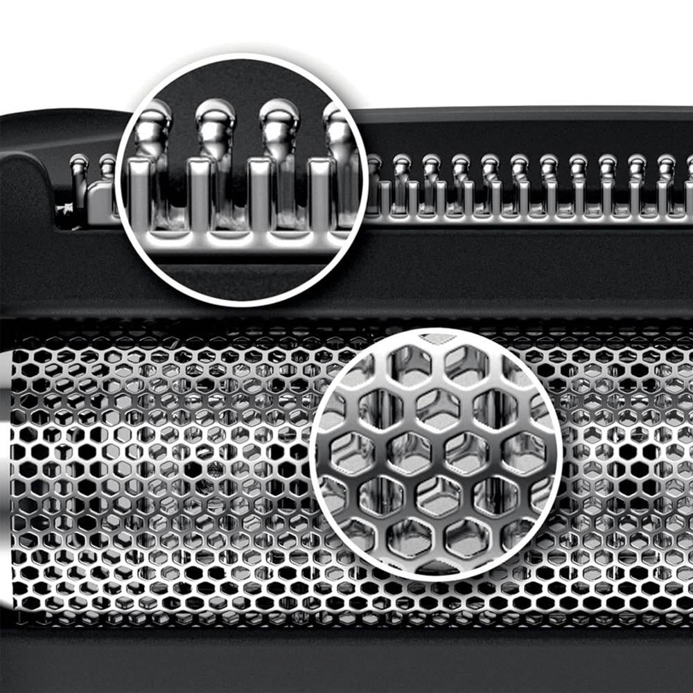 - رأس ماكينة الحلاقة مستدير لضمان حماية البشرة والرقاقات المعدنية مضادة للحساسية.