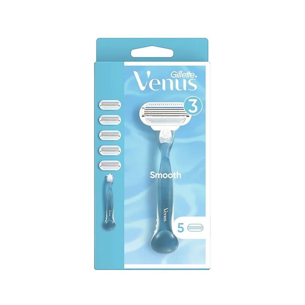 جيليت ماكينة حلاقة فينوس سموث للنساء بمقبض + 5 شفرات حلاقة مصممة لتوفير تجربة حلاقة مريحة وناعمة للسيدات، مع أداء فعال للحصول على حلاقة دقيقة وسلسة.