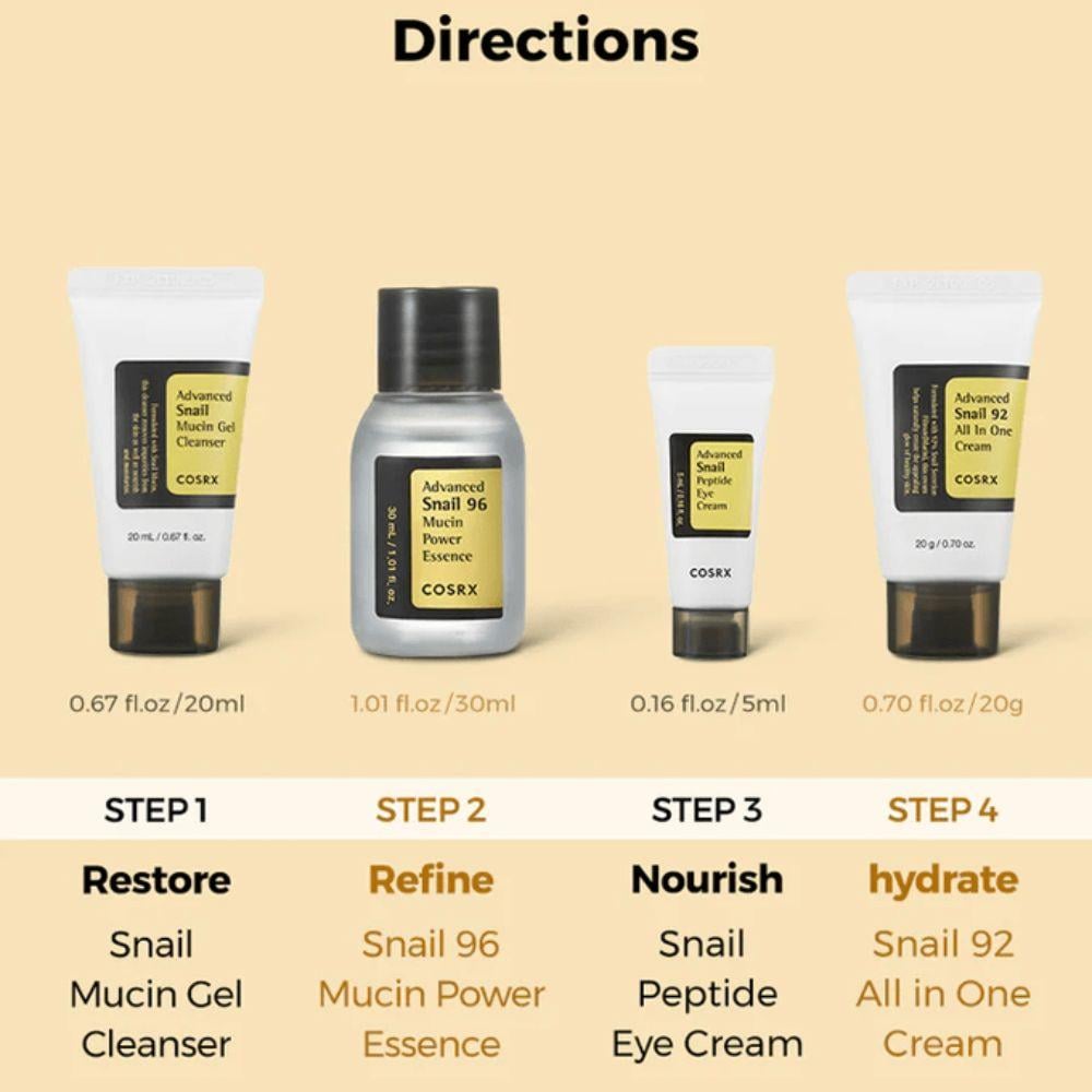 طريقة الأستعمال: مجموعة الحلزون للعناية
