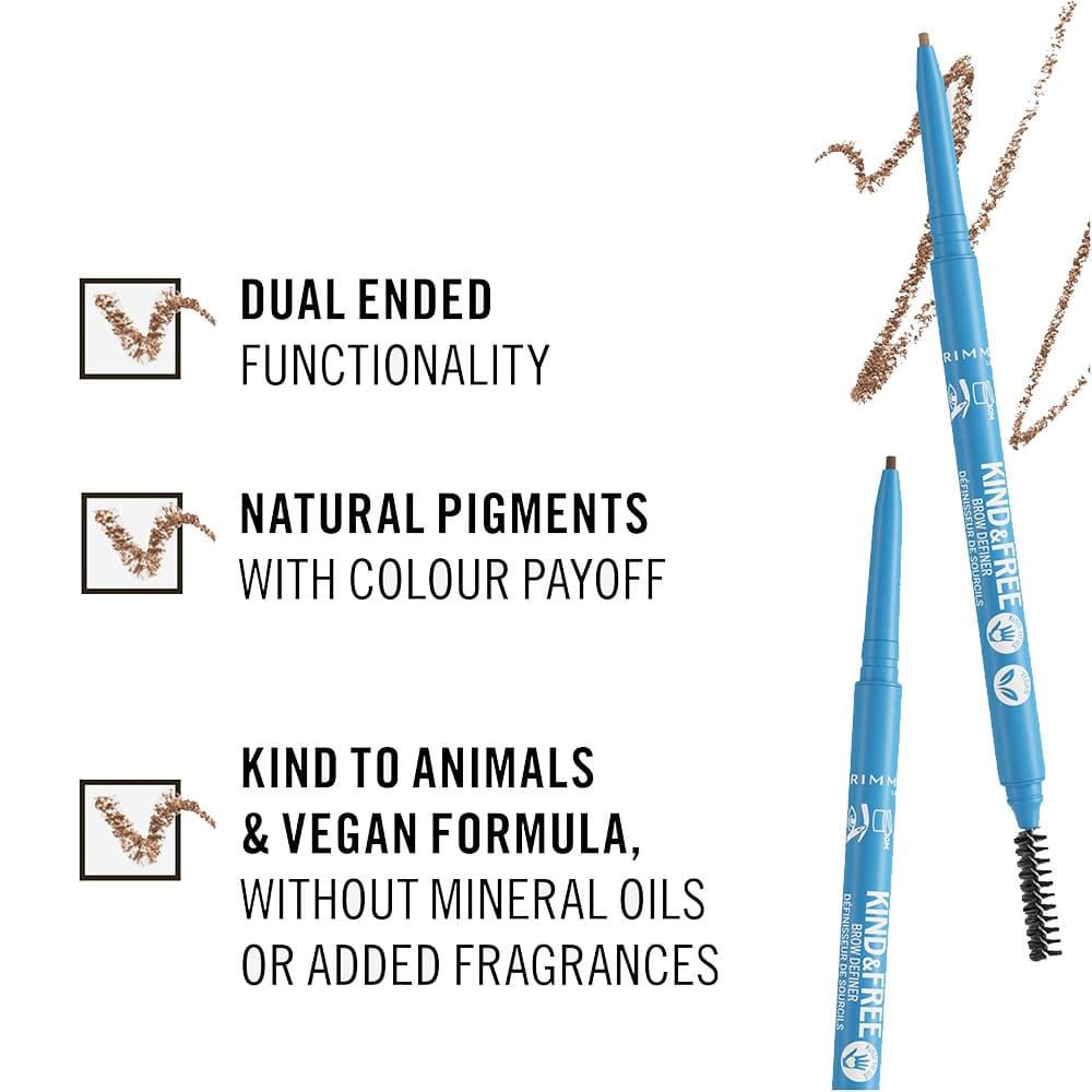محدد الحواجب كايند آند فري من ريميل لندن باللون 003 وارم براون هو قلم حواجب نباتي وخالٍ من القسوة مصمم لإعطاء حواجبك مظهرًا طبيعيًا ومحددًا. يتم صياغة هذا محدد الحواجب بمكونات نظيفة، مما يضمن أنه لطيف على البشرة بينما يوفر تلوينًا ممتازًا ويدوم طويلًا. اللون 003 وارم براون مثالي لأولئك الذين لديهم شعر بني دافئ، مما يساعد على ملء المناطق الفارغة وتشكيل الحواجب بدقة.