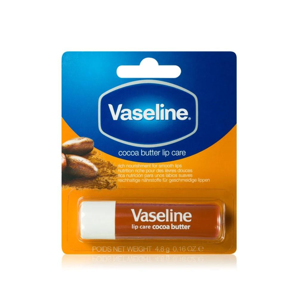 فازلين مرطب الشفاه بزبدة الكاكاو هو مرطب شفاه غني بزبدة الكاكاو الطبيعية، التي تعمل على ترطيب وتغذية الشفاه الجافة. كما أنه يحتوي على هلام الفازلين، الذي يساعد على حبس الرطوبة في الشفاه. يتميز فازلين مرطب الشفاه بزبدة الكاكاو بصيغته غير اللاصقة وغير اللامعة، مما يجعله مريحًا للاستخدام على مدار اليوم.