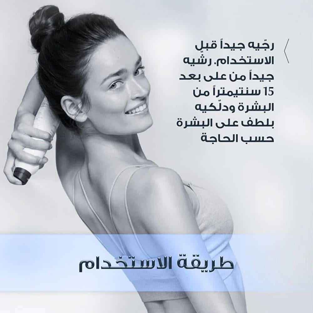 - رج العبوة جيدًا قبل الاستعمال. رش البخاخ على بعد 20 سم من الجلد. أفركه بلطف على الجلد حسب الحاجة.