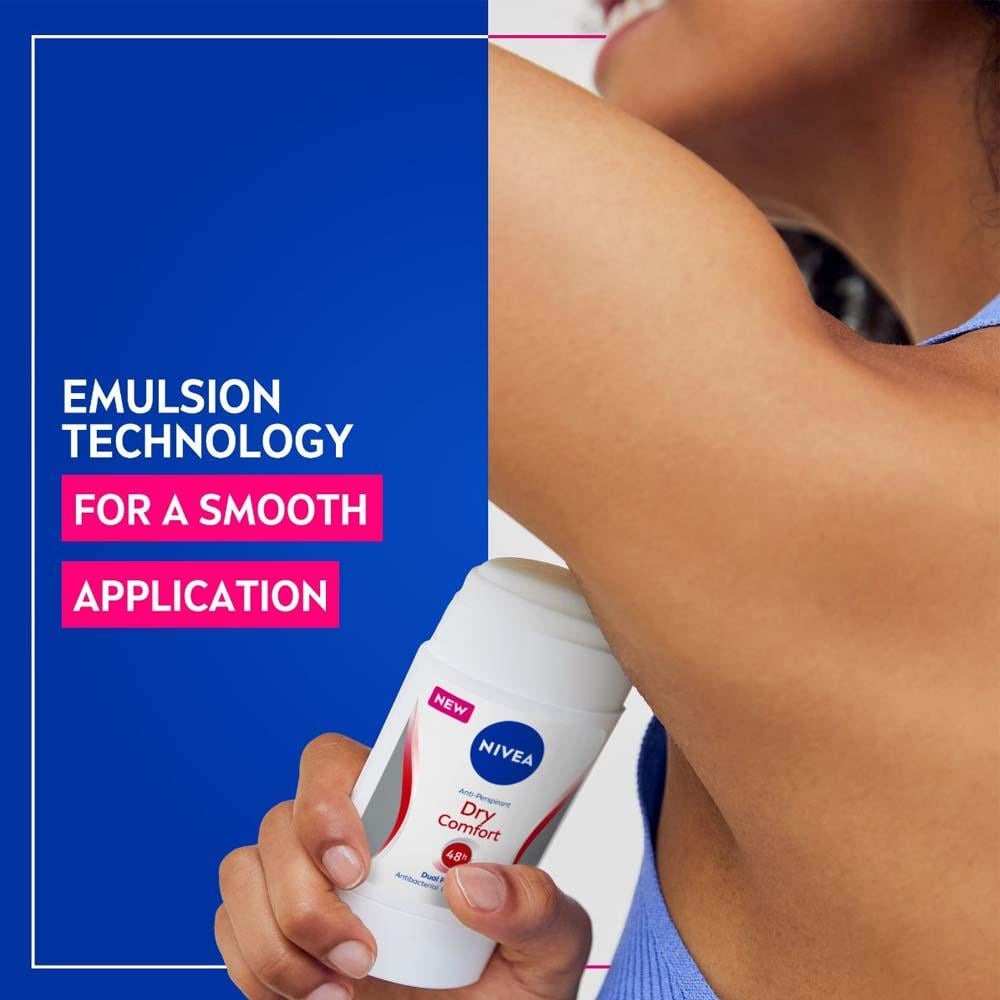 وداعا للتعرق مع مقاوم العرق نيفيا دراي كومفورت حماية قوية تم إختبارها في مواقف الحياة الحقيقية يأتي نيفيا كومفورت بتركيبتة الفعالة والمزدوجة بمادتين فعالة مقاومة للتعرق لشعور بالجفاف يدوم طويلا ليجعل بشرتك تحت الذراعين ناعمه لتغذية أكثر وحماية أطول من التعرق وعناية فائقة لبشرتك تدوم ل 48 ساعة لتستمتع برائحة لطيفه ومنعشة وحماية من التعرق لتحظي بإطلالة رائعة ورائحه جذابة.