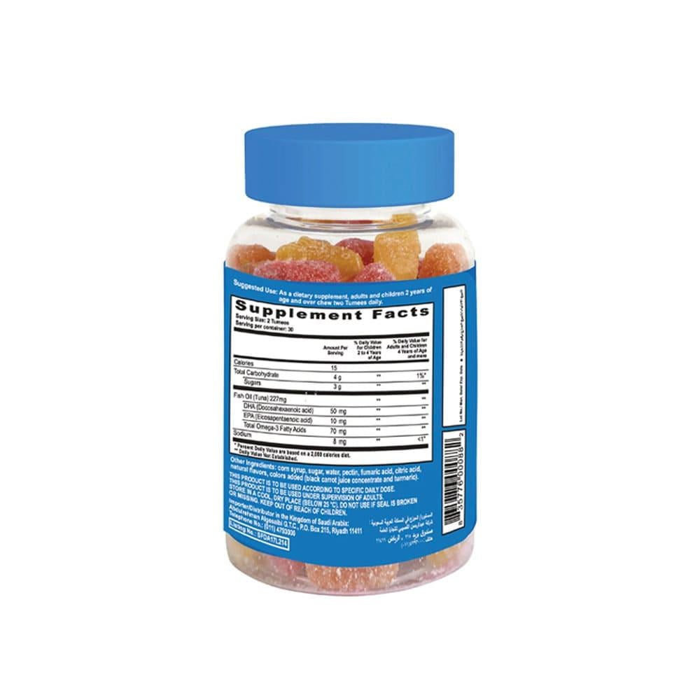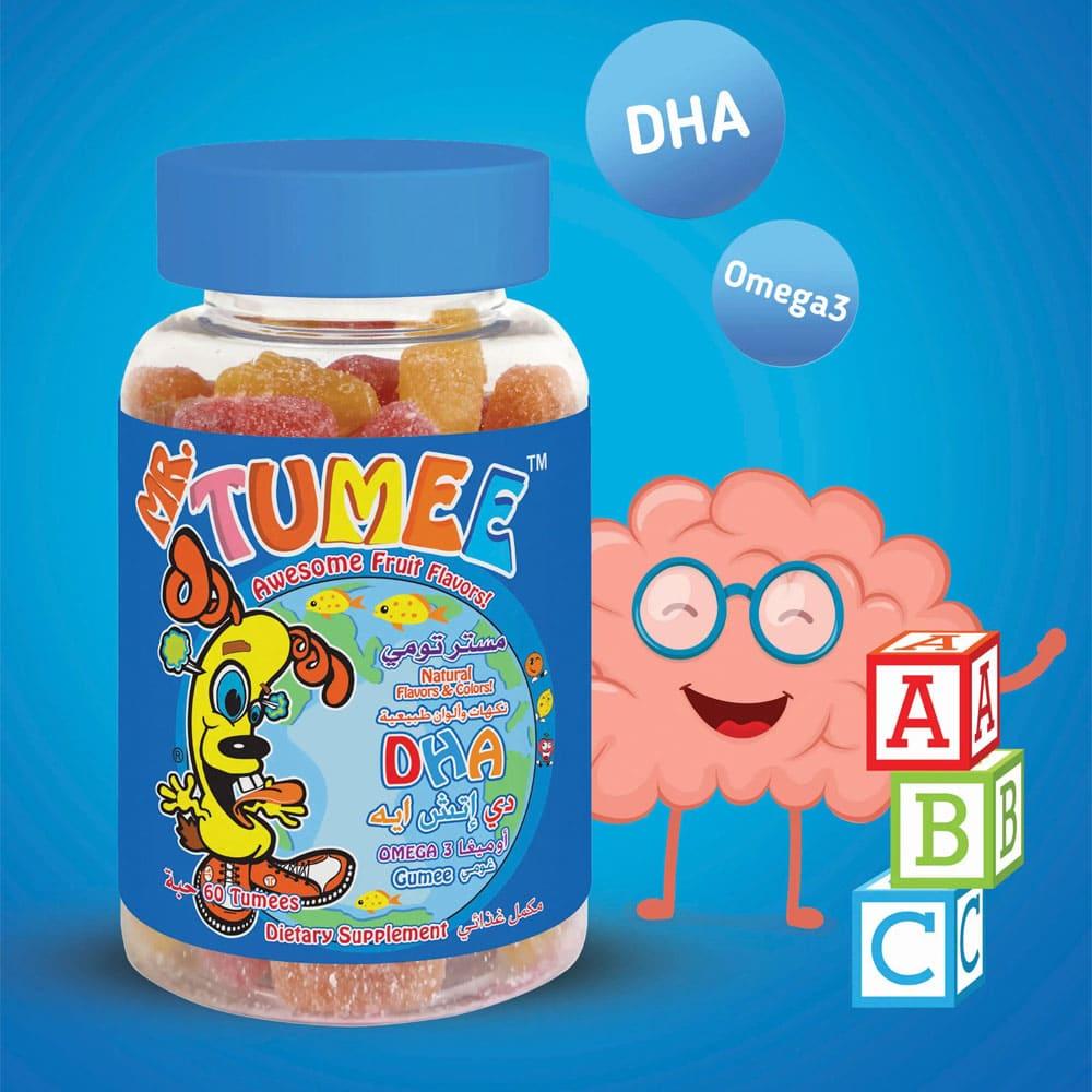 الوصف:مستر تومي أقراص مضغ اوميغا 3 هي مكمل غذائي للأطفال من عمر سنتين فما فوق. تحتوي كل حبة على 180 مجم من حمض الدوكوساهيكسانويك (DHA) و 90 مجم من حمض الإيكوسابنتاينويك (EPA) بالإضافة إلى فيتامين د. تأتي الأقراص بنكهات طبيعية مثل البرتقال والفراولة والليمون وهي خالية من الجيلاتين والغلوتين. الفوائد والمميزات:يدعم صحة الدماغ والنمو: DHA هو عنصر غذائي أساسي ضروري لتطور الدماغ والوظيفة يساعد على تحسين التركيز والسلوك.يساعد في خفض الكوليسترول والدهون الثلاثية وتحسين ضغط الدم، مما يقلل من خطر الإصابة بأمراض القلب.يساعد تناول ما يكفي من DHA في تقليل خطر الإصابة بأمراض العيون المرتبطة بالعمر مثل الضمور البقعي.يساعد في تقوية جهاز المناعة ومكافحة الالتهابات.يحسن الحالة المزاجية.لذيذ وسهل تناوله. طريقة الاستعمال:للأطفال من سن 2 إلى 4 سنوات: 1-2 حبة يومياً.للأطفال من سن 5 سنوات فأكثر: 2-3 حبات يومياً. التحذيرات:يحفظ بعيدا عن متناول الأطفال.يحفظ في مكان بارد وجاف ، بعيداً عن أشعة الشمس المباشرة.