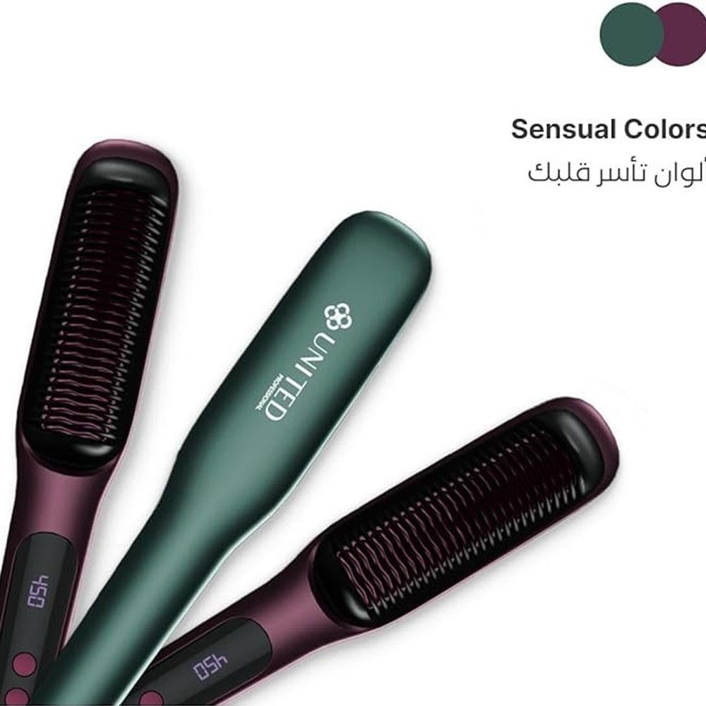 يونايتد بروفيشنال مشط الشعر الكهربائي موديل UN-208 بلون أخضر هو أداة مبتكرة مصممة لتصفيف الشعر بسهولة وفعالية. يجمع هذا الجهاز بين وظائف التمشيط والحرارة لتحقيق تسريحات أنيقة وناعمة بسرعة.