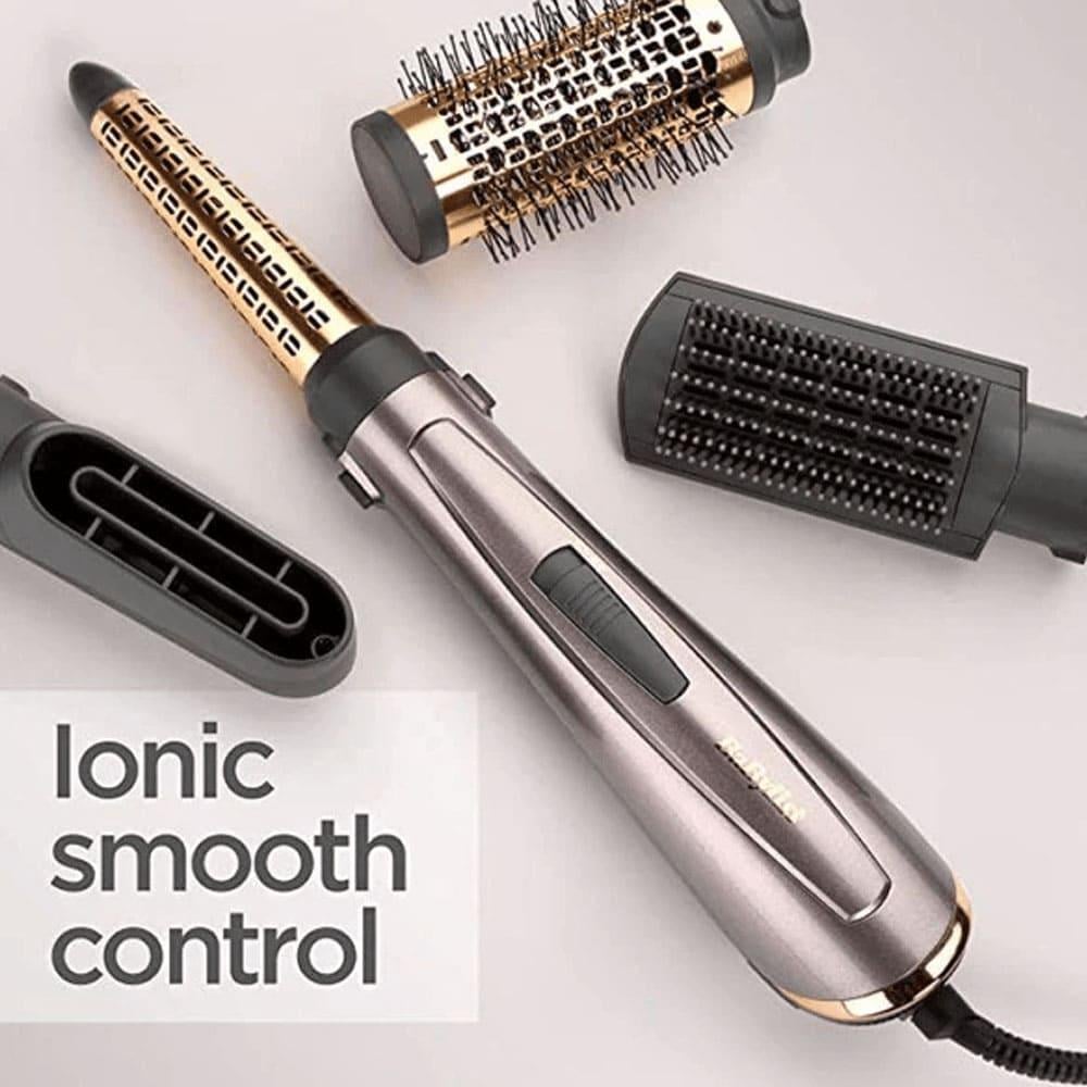 • مصفف شعر قوي مع مجموعة من الملحقات للتجفيف والتنعيم والتشكيل والتجعيد.
