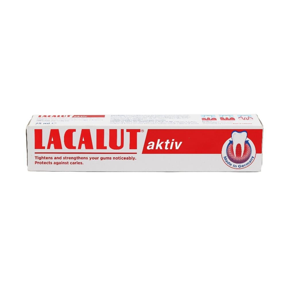 معجون أسنان لاكالوت اكتف هو معجون أسنان علاجي مصمم خصيصًا لحماية اللثة وتقويتها. كما انه تحتوي تركيبة معجون الأسنان على مكونات فعالة مثل الفلورايد الصوديوم والكلورهيكسيدين جلوكونات، والتي تعمل على قتل البكتيريا المسببة للالتهابات وتقليل الالتهاب وتعزيز التئام الجروح.