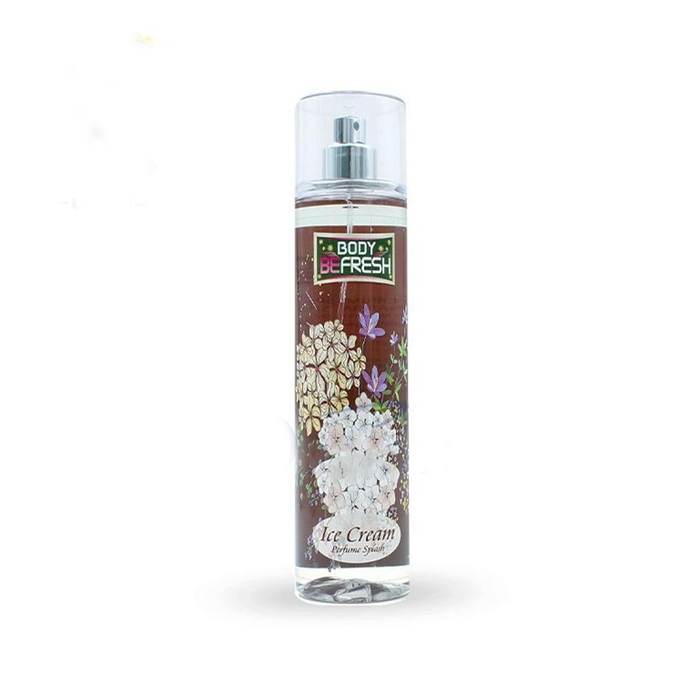 بودي بي فريش معطر الجسم برائحة الآيس كريم هو معطر منعش وممتع مصمم لمنحك إحساسًا بالانتعاش ورائحة جميلة طوال اليوم. يتميز بعطر مستوحى من رائحة الآيس كريم الحلوة والمنعشة، مما يجعلك تشعرين بالحيوية والسعادة. تركيبته الخفيفة مثالية للاستخدام اليومي، حيث يترك البشرة مرطبة ومنتعشة مع رائحة تدوم طويلاً.