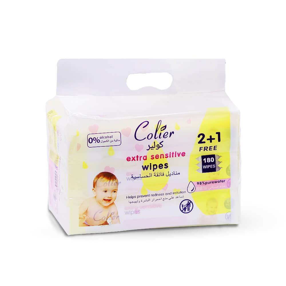 كولير مناديل الحساسة للغاية – 180 منديل هي مناديل مصممة خصيصاً لتوفير تنظيف لطيف وفعال للبشرة الحساسة. هذه المناديل مثالية للاستخدام اليومي، سواء للعناية الشخصية، أو للأطفال، أو للتنظيف أثناء التنقل، مما يضمن تجربة ناعمة ومريحة.