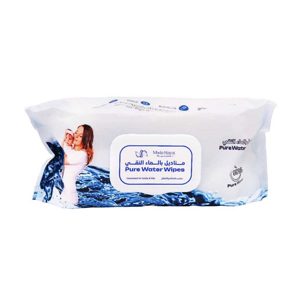 مدى حياة مناديل مبللة بالماء النقي %99 هي مناديل مبللة ذات حموضة متوازنة p.H تستخدم لتنظيف الجسم واليدين بلطف وفعالية تحتوي على فيتامين E وفيتامين B5 وهي عبارة عن قطع قماش مبللة بالماء النقي دون إضافة أي مواد كيميائية تركيبة خالية من البارابين والكحول والعطور.