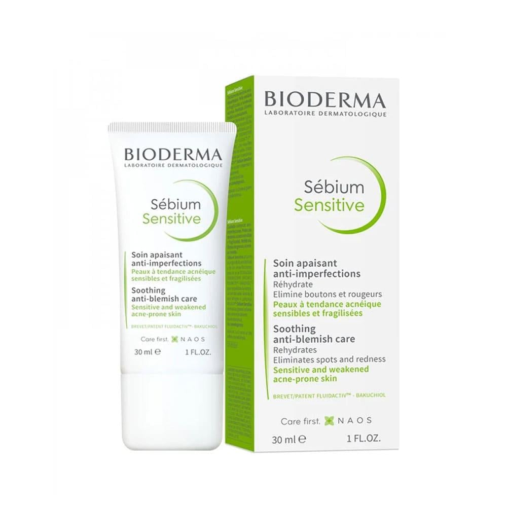كريم Bioderma Sébium Sensitive عبارة عن رعاية تعمل على ترطيب وإزالة البقع والاحمرار. تم تركيبه خصيصًا للبشرة الحساسة والضعيفة والمعرضة لحب الشباب. تحتوي هذه العناية المهدئة على تقنية SeboRestore (Fluidactiv Patent – Bakuchiol) التي تعمل على معالجة الأسباب الجذرية لحساسية البشرة المعرضة لحب الشباب والعيوب.