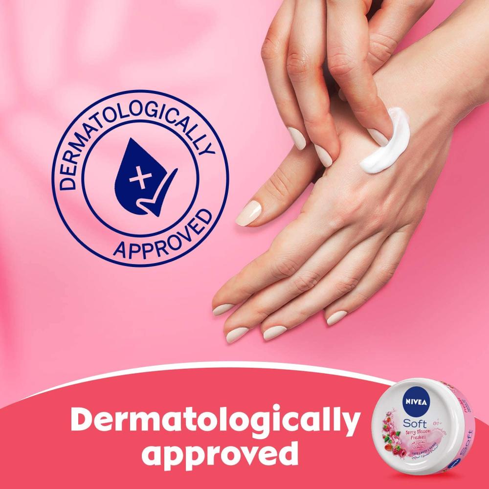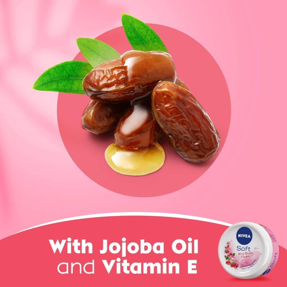 نيفيا سوفت انتعاش زهر التوت برائحة مشرقة وحيوية من التوت الطازج. تمتص التركيبة الخفيفة المناسبة لجميع أنواع البشرة والمحتوية على فيتامين هـ وزيت الجوجوبا بسرعة وترطب بشرتك بشكل مكثف.الفوائد والمميزات:كريم مكثف الترطيب فائق الفعالية ومزود بفيتامين E وزيت الجوجوبا.قوام خفيف الوزن تمتصه البشرة بسرعة فائقة وينعشها.منتج يغذي البشرة ويرطبها حتى تظل ناعمة ونضرة ومشرقة.مرطب استثنائي برائحة من التوت الطازج المنعش اللطيف.كريم ترطيب مكثف وفعال للغاية.المكونات:المياه, جليسرول, سائل البارافين, كحول مريستيل, بيوتلين جلايكول, كحول دينات, حَمْضُ الستياريك, ميريستيل ميريستات, سير جريزوفولفين, ستيرات الغليسرول, جلسريدات كاكاو مهدرجة, Simmondsia Chinensis Seed Oil, توكوفيريل اسيتات, كحول اللانولين (اليورسريت®), كابارات بولري جليسريل2-, ديميثكون, هيدروأكسيد الصوديوم, كربومير, فينوكسي إيثانول, كحول بنزيلي, ساليسيلات البنزيل, لينالول, جيرانيول, ألفا إيزوميثيل ونون, سيترونيلا, ليمونين, Parfum. بالإضافة غلى زيت الجوجوبا وفيتامين هـطريقة الاستخدام:يستخدم يوميا على الوجه والجسم واليدينخذي كمية من الكريم ودلكيه برفق على جميع المنطقة المستهدفة وكثفي في المناطق الأشد جفافاالتحذيرات:للاستخدام الخارجي فقط.يحفظ في مكان بارد وجاف ، بعيداً عن أشعة الشمس المباشرة.يحفظ بعيداً عن متناول الأطفال.توقفي عن استخدام المنتج في حالة حدوث تهيج أو حساسية.احذري من ملامسة المنتج للعينين. في حال ملامسة العين يشطف بالماء على الفور.