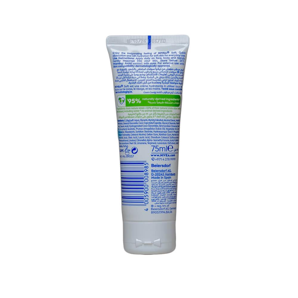 كريم نيفيا سوفت كريم مرطب خفيف سريع الامتصاص مناسب لجميع أنواع البشرة، بما في ذلك البشرة الجافة والحساسة. غني بفيتامين هـ وزيت الجوجوبا للحفاظ على ترطيب بشرتك وحمايتها. يمكن استخدام كريم نيفيا سوفت على الوجه واليدين والجسم، وهو جيد بشكل خاص للاستخدام بعد المطهر أو صابون اليد.