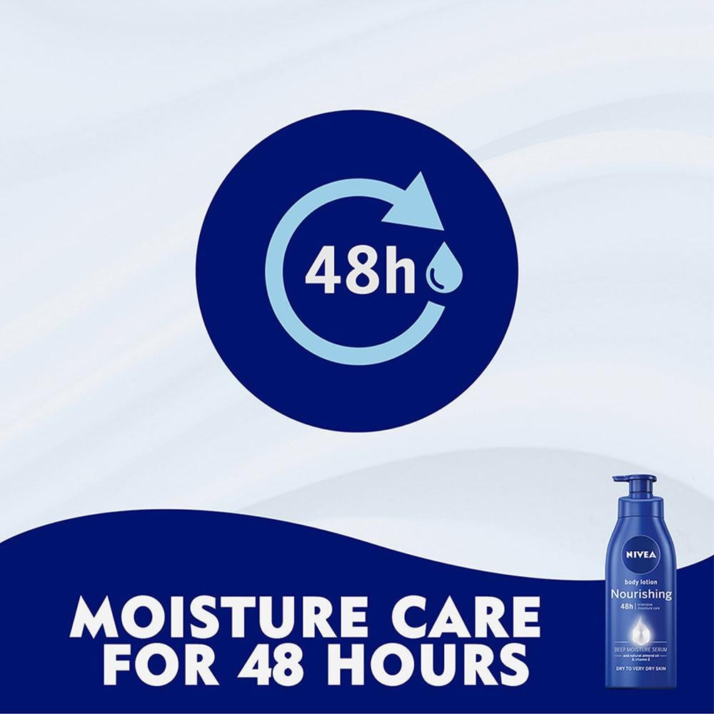 لوشن الجسم خلاصة زيت اللوز الطبيعي وفيتامين إي تركيبة فريدة صنع خصيصا للبشرة الجافة الي الجافة جدا لتغذية كاملة حيث انه معزز بسيروم الترطيب العميق وزت اللوز الطبيعي وفيتامين إي يغذي بكثافة لمدة 48 ساعة ويقلل من خشونة البشرة الجافة جدا بشكل ملحوظ بعد إستخدام واحد فقط لتحظي ببشرة أكثر نعومة وتغذية كاملة تدوم طويلا.