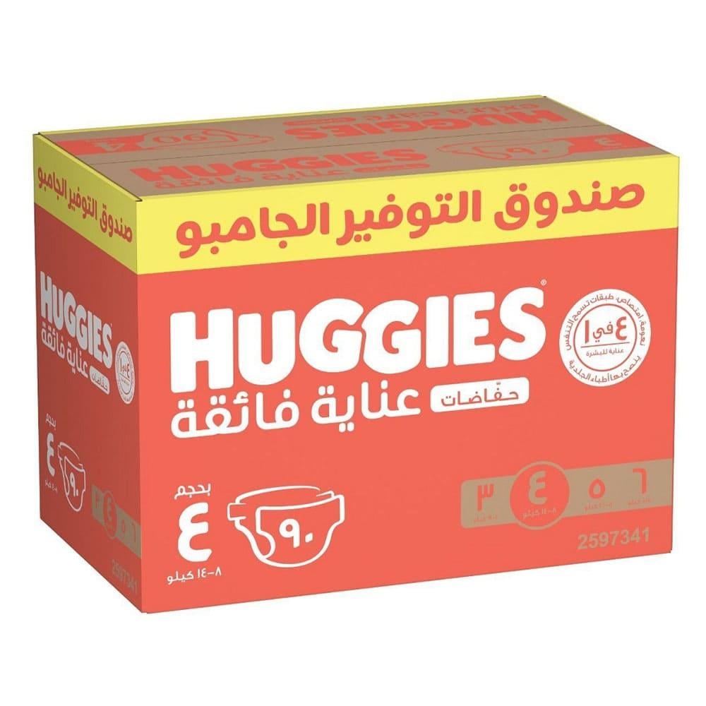 هجيز حفاضات عناية فائقة رقم 4 صندوق التوفير الجامبو – 90 حفاض