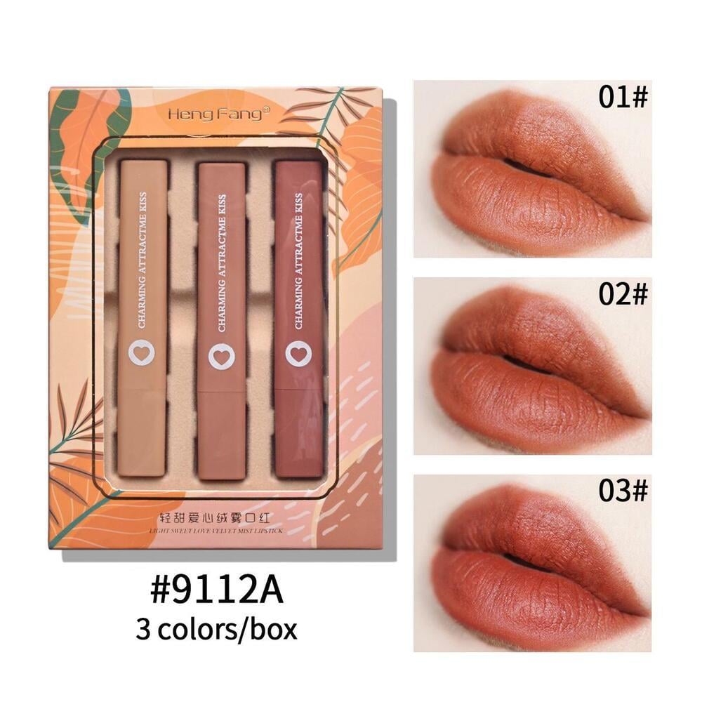 هنج فانج مجموعة احمر الشفاه لايت سويت لوف فيلفيت ميست – 3 لون 9112A