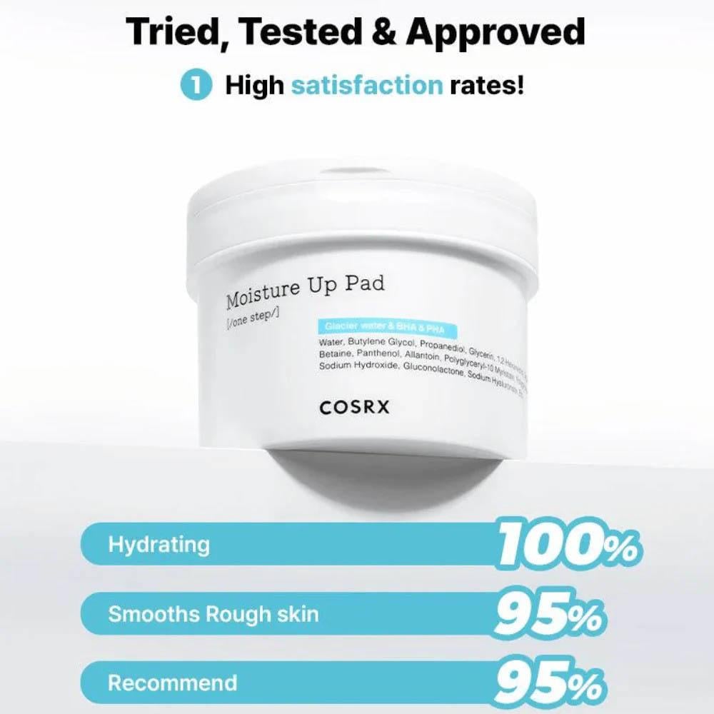 وسادات “ون ستيب مويستشر أب باد” من COSRX وسادات مبللة بمستخلصات طبيعية، مصممة لترطيب البشرة وتجديدها بعمق. تحتوي هذه الوسادات على 70 قطعة مبللة بمزيج من مستخلص البروبوليس وحمض الهيالورونيك، مما يساعد على إزالة خلايا الجلد الميتة وترطيب البشرة بفعالية. تُعد هذه الوسادات مثالية للاستخدام اليومي، حيث تساهم في تحسين ملمس البشرة وجعلها أكثر نعومة وإشراقًا.