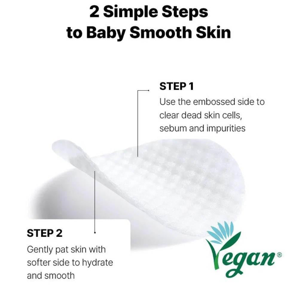 - تقشير لطيف تعمل الوسادات على إزالة خلايا الجلد الميتة بلطف، مما يساعد في تحسين ملمس البشرة وجعلها أكثر نعومة.
