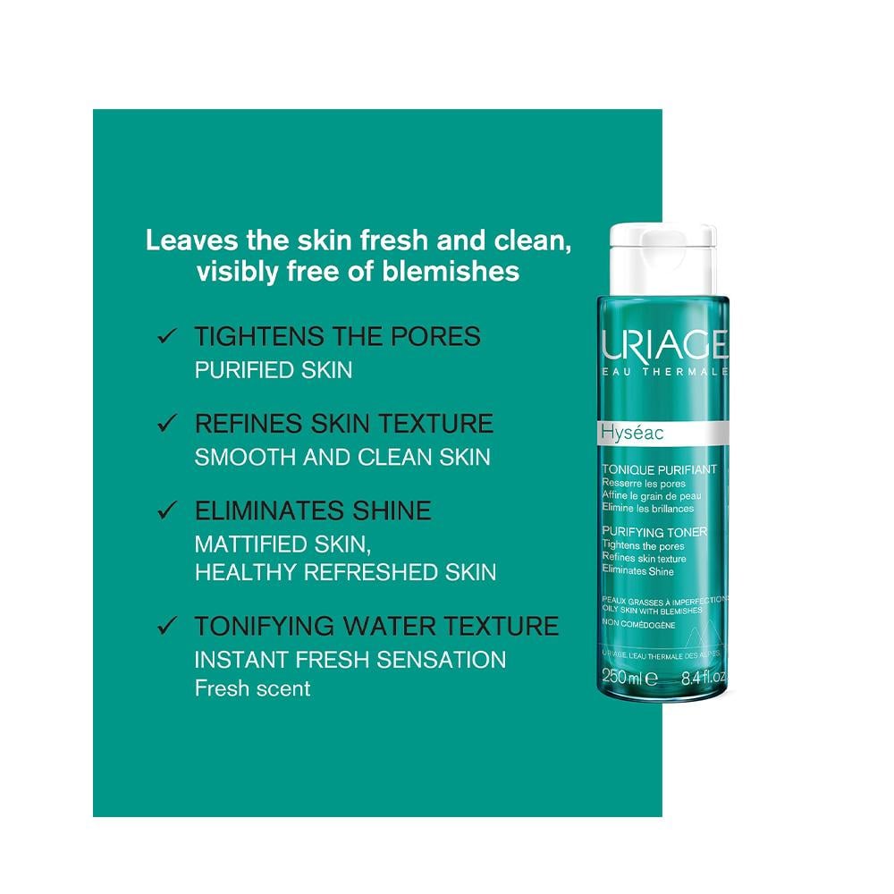 Uriage Hyseac Purifying Toner هو منتج للعناية بالبشرة مصمم لتنقية البشرة الدهنية والمعرضة لحب الشباب وإزالتها. إنه جزء من خط Hyseac من Uriage ، وهي علامة تجارية فرنسية معروفة للعناية بالبشرة.