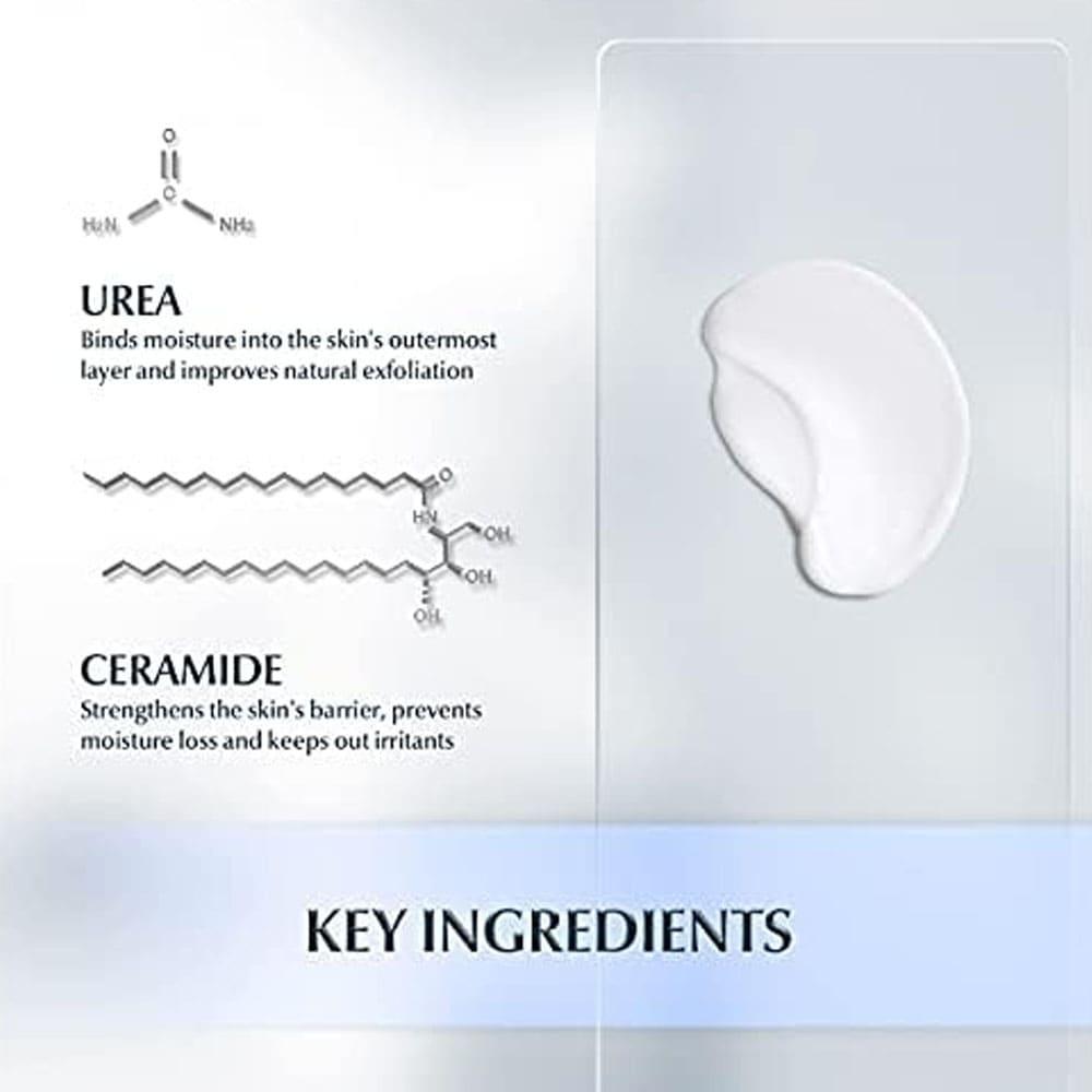 - يوفر ترطيبًا مكثفًا وطويل الأمد للقدمين الجافة إلى شديدة الجفاف.